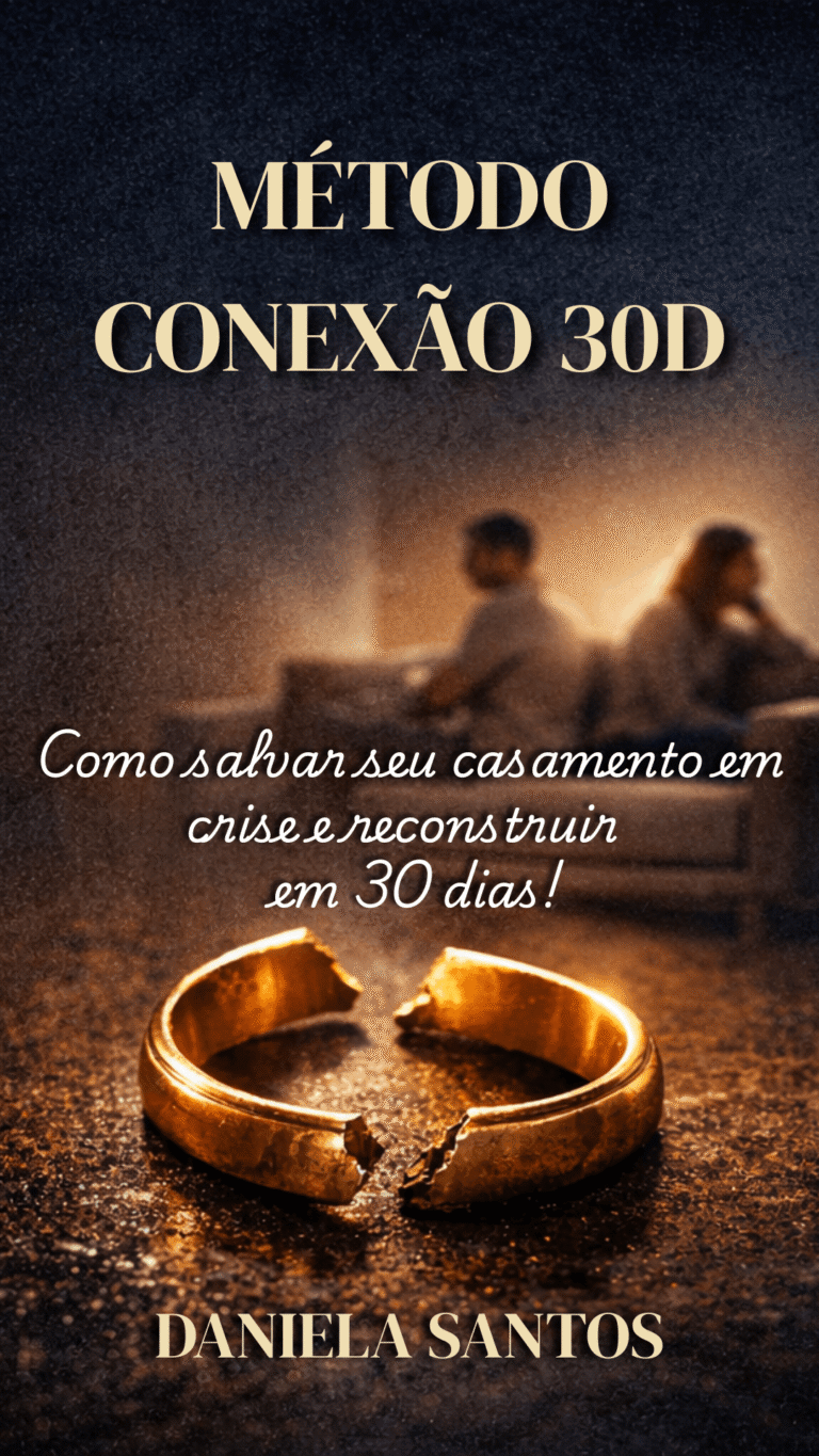 O Método Conexão 30 Dias é um passo a passo diário para ajudar você a entender o que está acontecendo no seu casamento, controlar suas reações e reconstruir o ambiente do relacionamento com sabedoria.